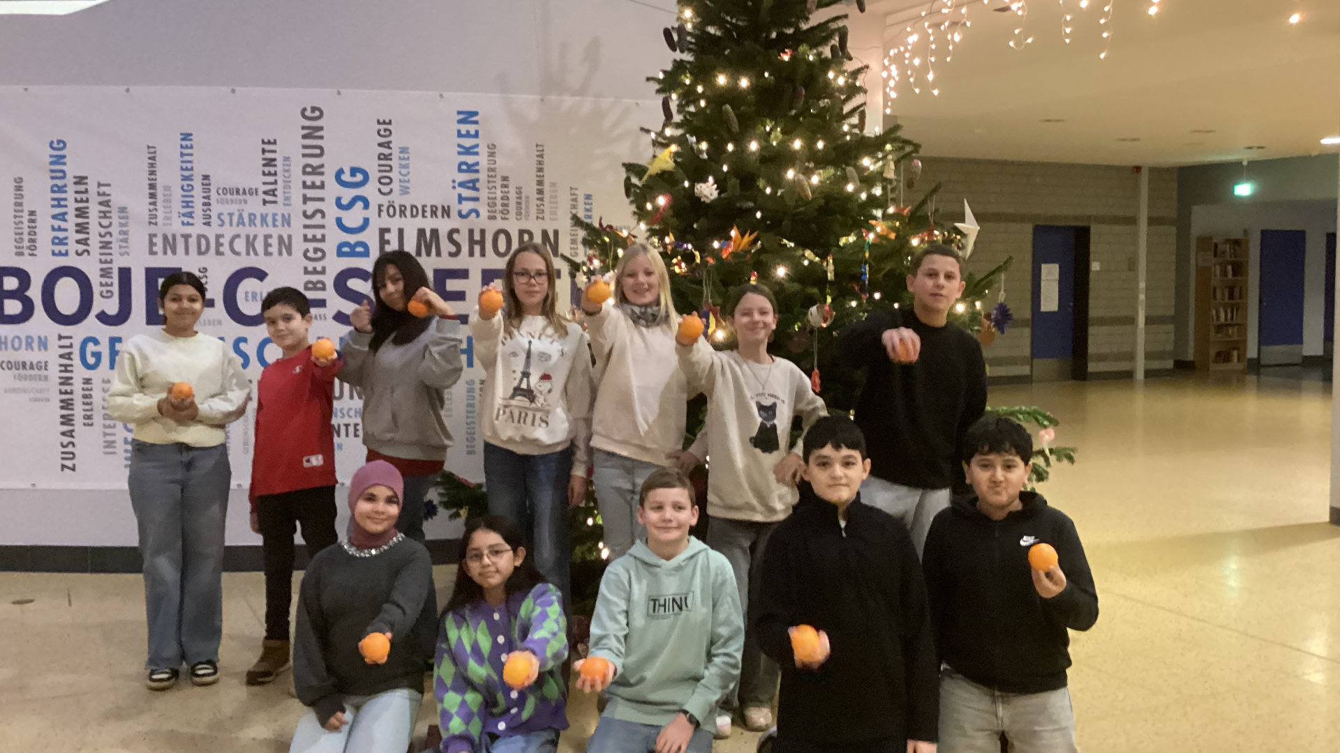 Schließlich wurde der große Weihnachtsbaum im Forum reichlich geschmückt und jede fünfte Klasse ließ sich das Mensaessen in der Schulmensa, gesponsert vom Schulverein, schmecken.